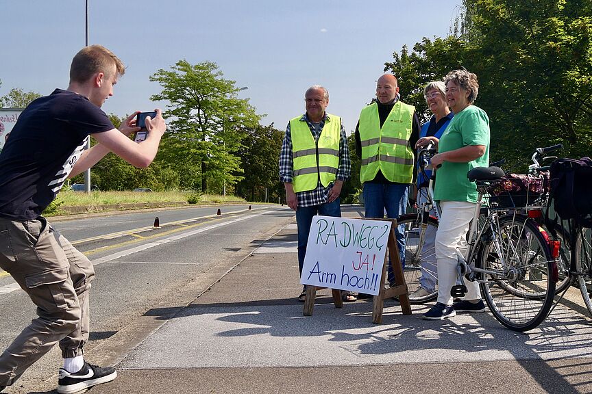 Während die Befürworter des Radstreifens allesamt im Vorbeifahren durch einen erhobenen Arm ihre Zustimmung zu erkennen gaben, hielten von den nur 36 Personen, die die Parkplätze zurück haben wollten, die meisten an. Das waren überwiegend Anwohner der benachbarten Straßen die sich über eine Überlastung mit regelwidrig parkenden Autos in ihrem Wohnbereich beschwerten. Allerdings hat die Verwaltung nichts unternommen, um das wilde Parken zu beenden. Auch einige Autofahrer und mindestens ein Busfahrer beteiligten sich und gaben mit hochgehaltener Hand zu erkennen, dass sie den Radstreifen weiter wollen.